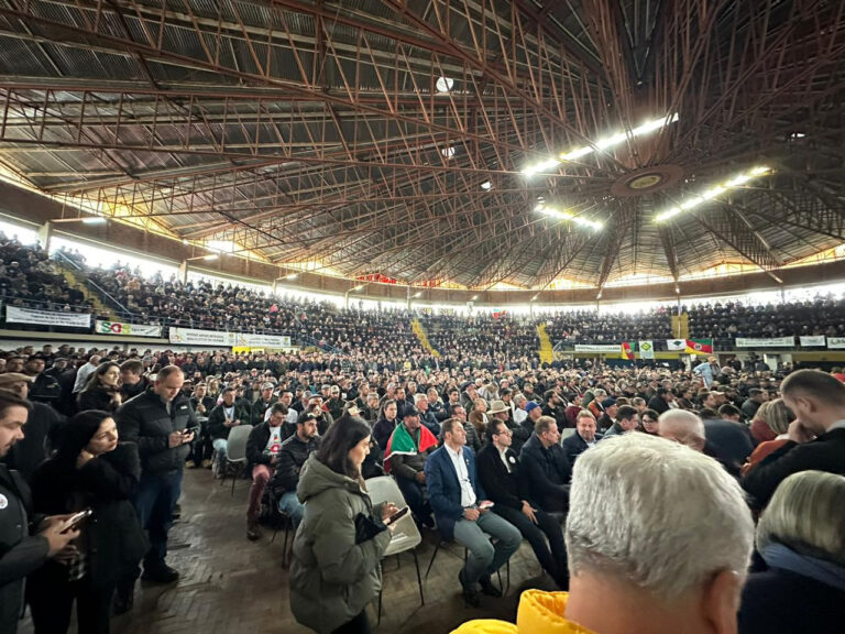 Milhares de produtores rurais e lideranças do agronegócio gaúcho lotaram nesta quinta-feira, 4, o ginásio da Fenarroz, em Cachoeira do Sul/RS, para protestar contra a demora do Governo Federal em anunciar medidas de socorro ao setor.