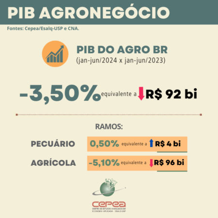 O PIB do agronegócio brasileiro, calculado pelo Centro de Estudos Avançados em Economia Aplicada (Cepea), da Esalq/USP, em parceria com a Confederação da Agricultura e Pecuária…